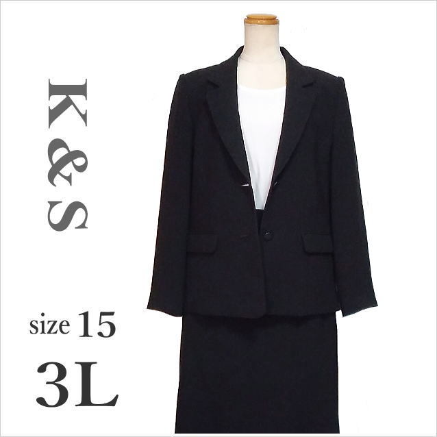 - 〈K&S〉ブラックフォーマルジャケット レディース 冠婚葬祭 卒業式 喪服 ゆったりサイズ 15 3L位 ☆送料込み