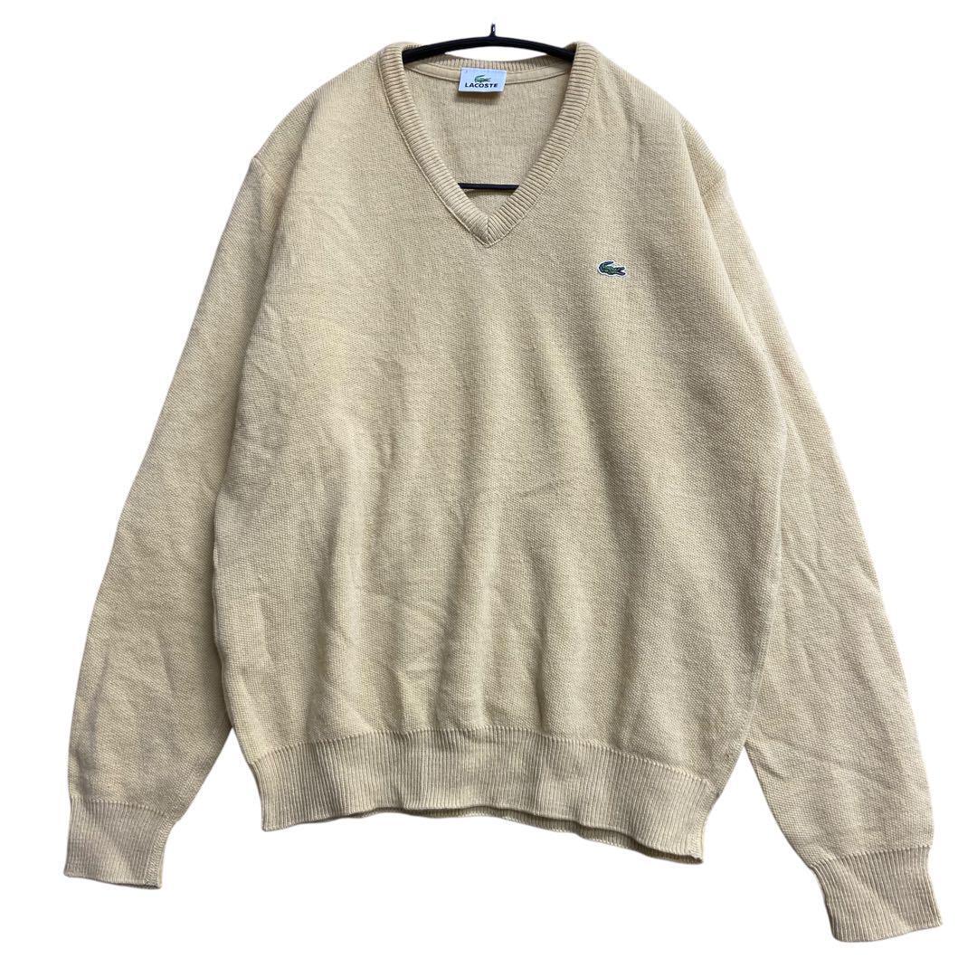 - ラコステ メンズセーター 黄色 L Vネック 刺繍エンブレム【2007】