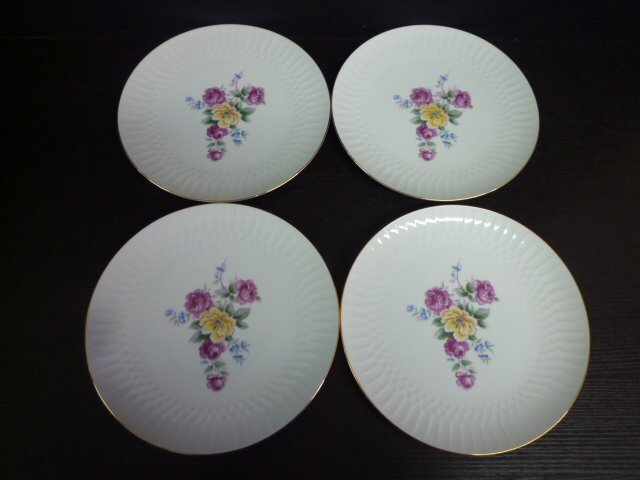 - TMB-06691-03 Noritake ノリタケ 月桂樹 RC印 グリーン 花柄 皿 プレート 直径約27cm まとめて 4枚