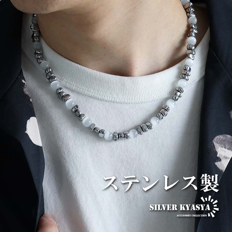 - ステンレス ヘマタイトネックレス 磁気ネックレスネックレス ネックレス チェーンネックレス 数珠ネックレス シルバー 金アレ対応
