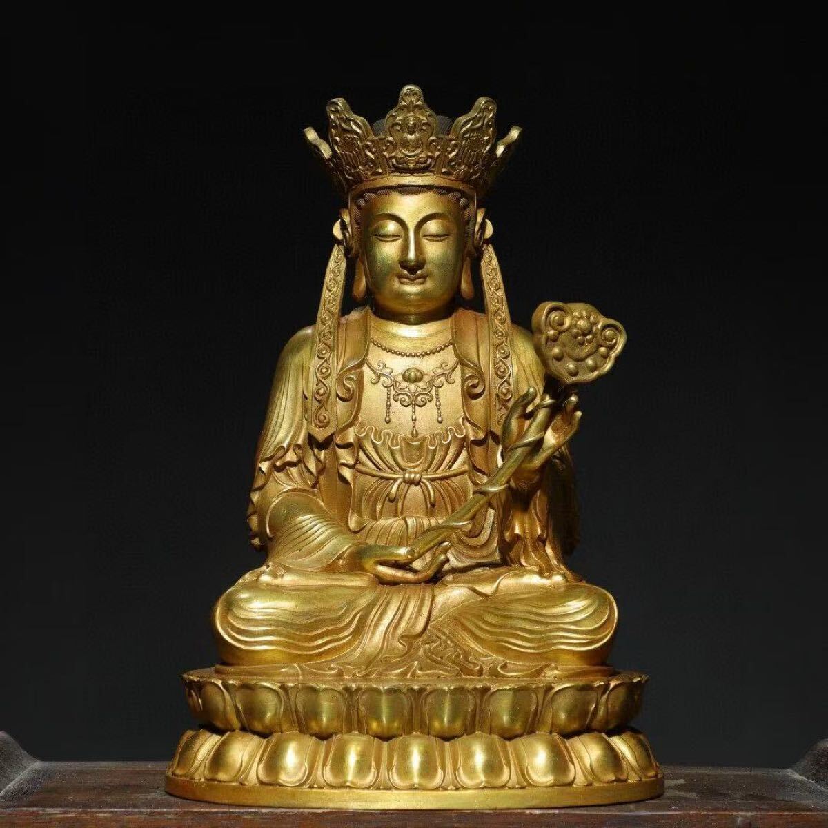 - 【伝】旧蔵古美術 純銅塗金観音像★仏教古美術★文殊菩薩仏像★仏教文化遺産★細密細工造★仏教至宝★廃寺買取品★凜々堂々 縁結び