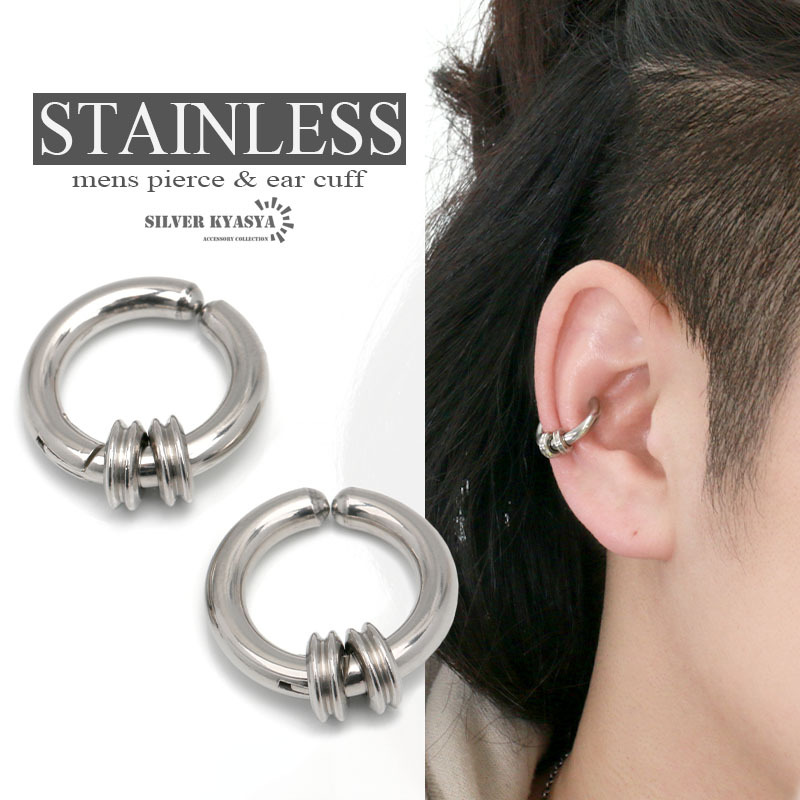 - 両耳用2点セット イヤーカフ フープピアス ステンレスピアス イヤークリップ オーブ 金属アレルギー