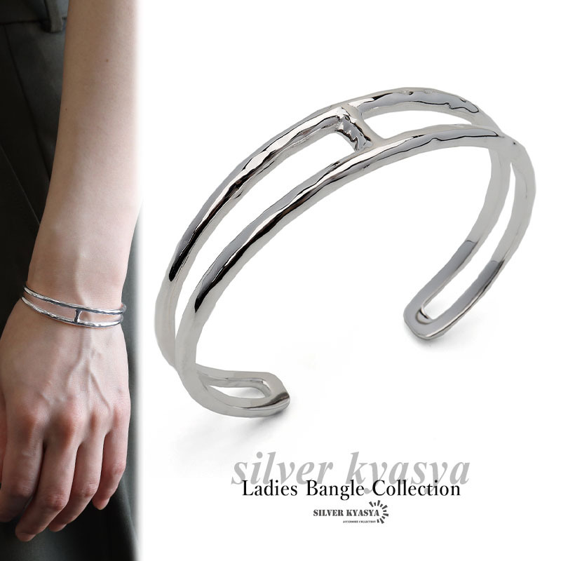 - ラインバングル シルバー925 透かし なめらかバングル レディース ブレスレット シルバー シンプル カジュアル 人気