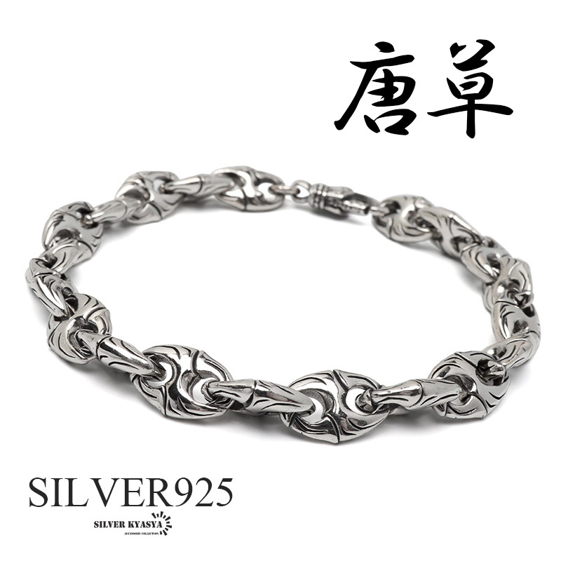 - シルバー925 唐草 アンカーブレスレット メンズ チェーンブレスレット 重厚 シルバーブレスレット 金属アレルギー対応