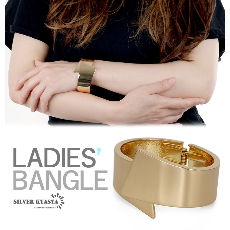 - アシンメトリー ワイドバングル シンプルバングル 太め 幅広 太めバングル ゴールド 開閉式 モード カジュアルバングル 腕輪 レディース