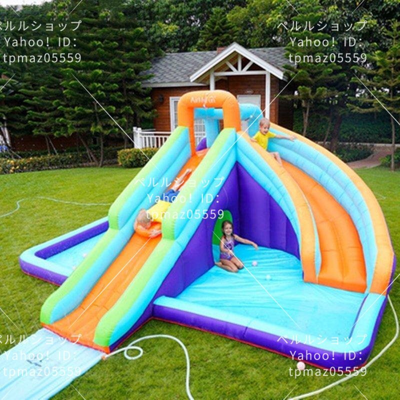 - [乾湿両用/送風機付き] プール 家庭用 大型 すべり台 スライダー インフレータブル バウンサー & スライド プール キャッスル 遊具