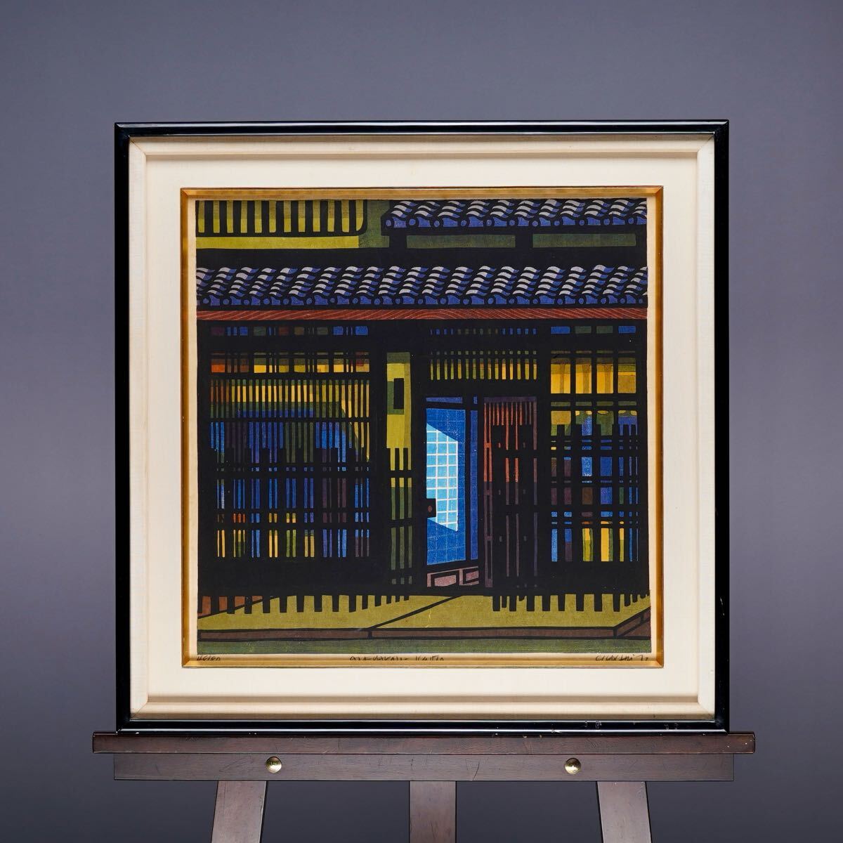 > 真作 クリフトン・カーフ Clifton Karfu「ANEYAKOJI・KYOTO」木版画 画寸(40x40) サインあり 1972年制作 80部限定 京都姉小路の古い町並み