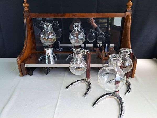- 山岡金属 コーヒー サイフォン ガステーブル SILK ROOM シルクルーム 3連 ガスコンロ L / サイホンボール 5個 / 珈琲 店舗 厨房 喫茶店