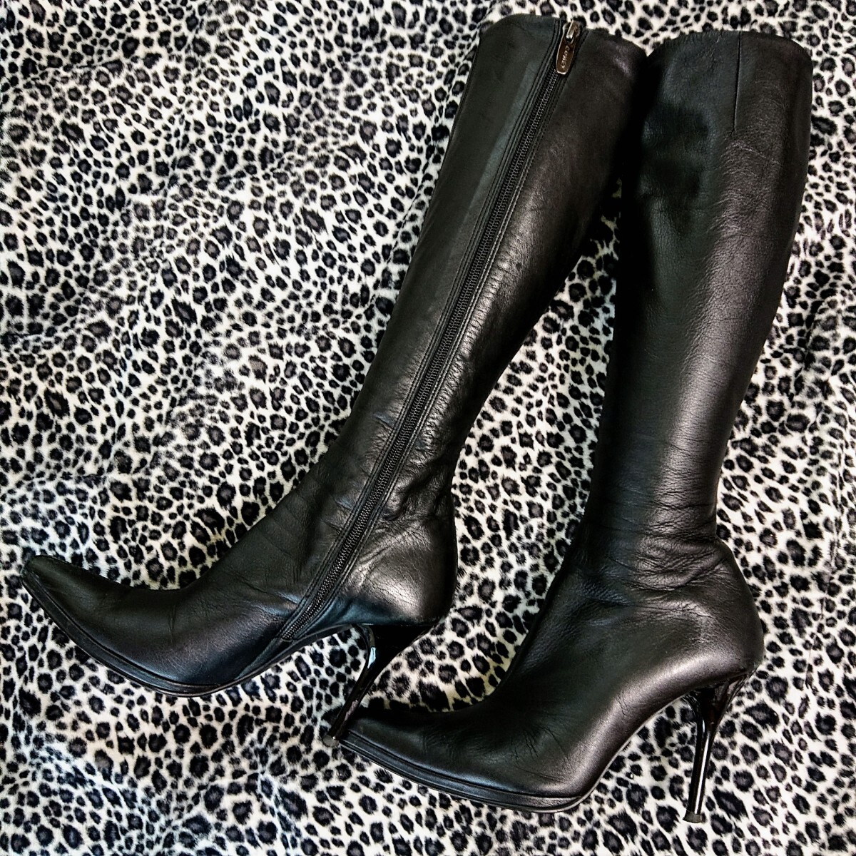 > ☆コメックス☆超美脚・本革ロングブーツ・ピンヒール・ポインテッドトゥ・爪先尖り・スムースレザー・セクシー・中古・使用感あり・愛用品