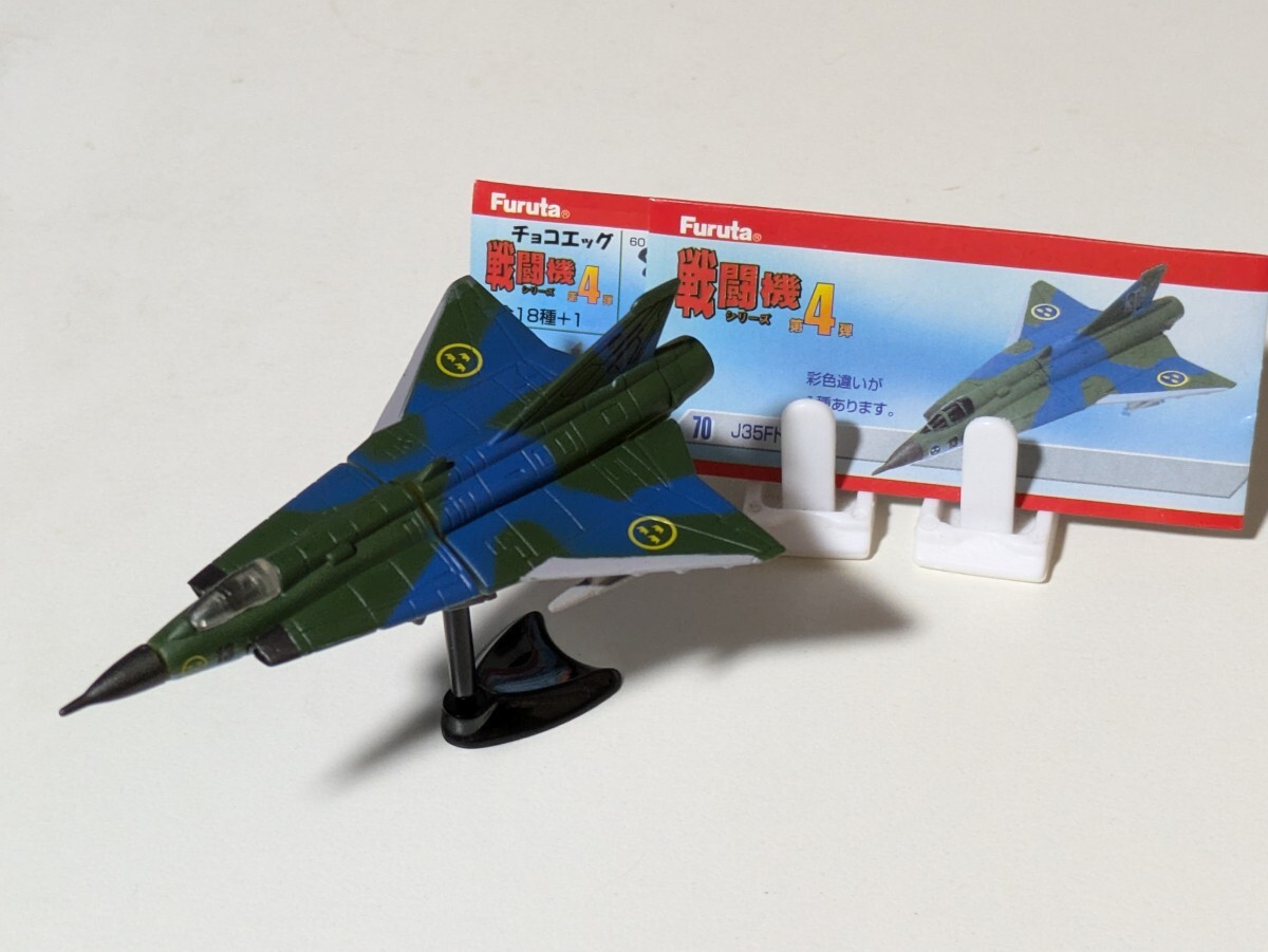 > 【美品】チョコエッグ 戦闘機シリーズ 第4弾 70 J35F ドラケン 解説書付き フィギュア