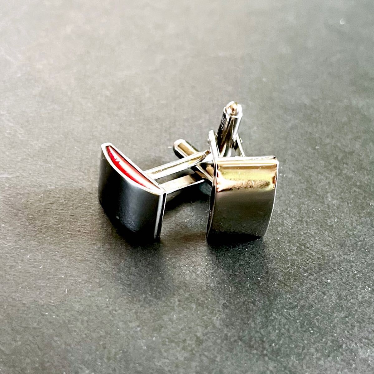 - カフスボタン カフリンクス シルバー レッド スクエア型 メンズ アクセサリー 結婚式 ビジネス フォーマル 紳士