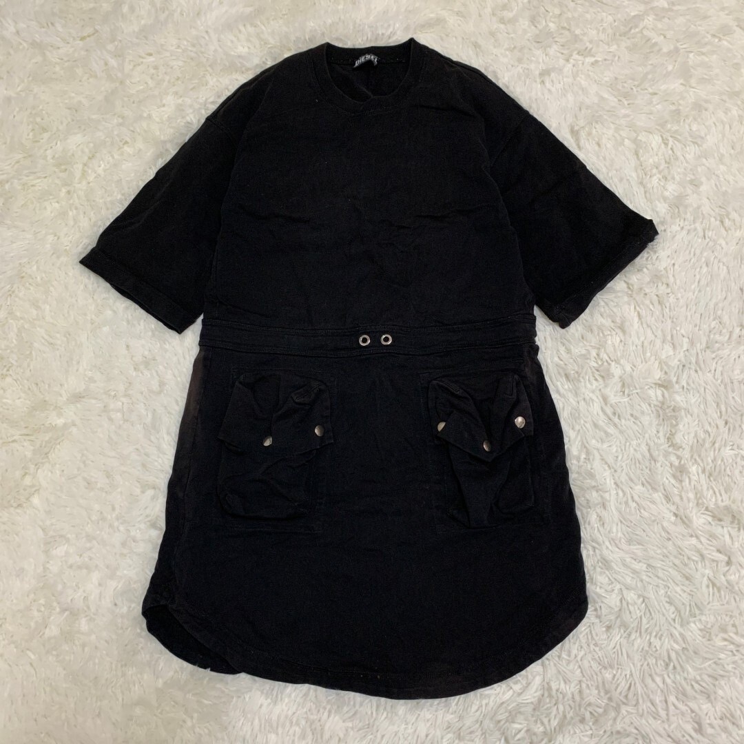 - DIESEL ディーゼル ワンピース 半袖 カジュアル ポケット ブラック サイズS カットソー Tシャツ