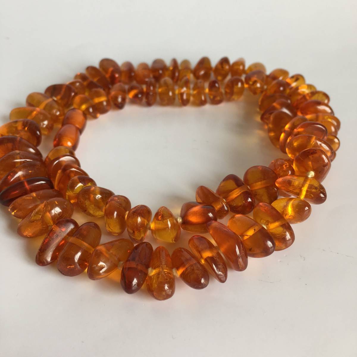 - アンバー、琥珀 コハク ロングネックレス ●60cm ◆ソーティング付