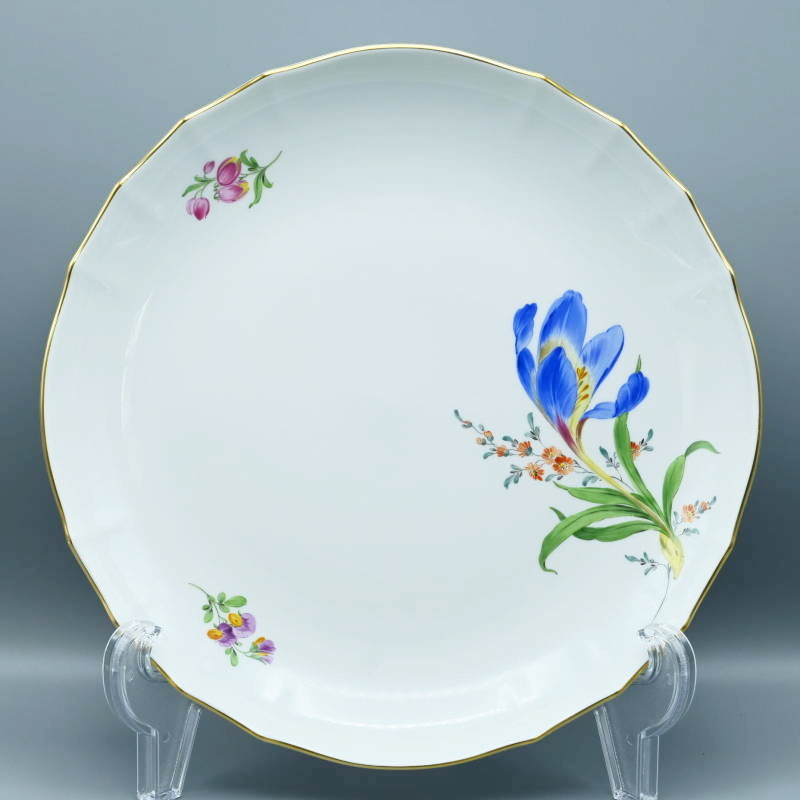 - M02-t019 美品 Meissen マイセン ベーシックフラワー プレート 大皿 二つ花 クロッカス 金彩 一級品