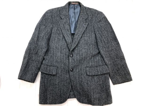- motoki 銀座 東京 レトロ オールド 英国トラッド 古着 2つボタン ヘリンボーン ツイード テーラードジャケット メンズ 背抜き S グレー