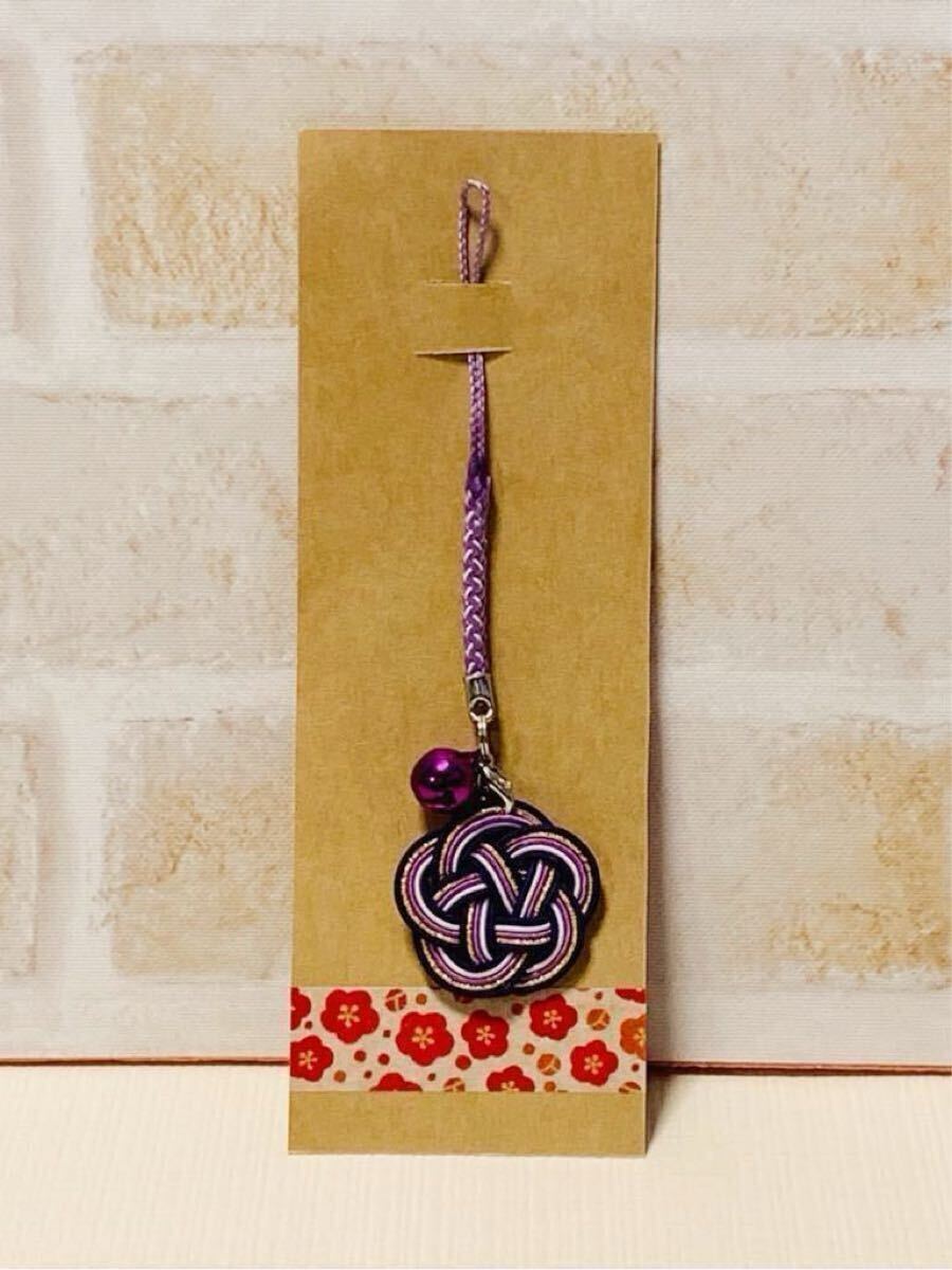 - 水引ストラップ(W-16)ハンドメイド/和風/着物/浴衣/ストラップ/紫×薄紫×金色×白