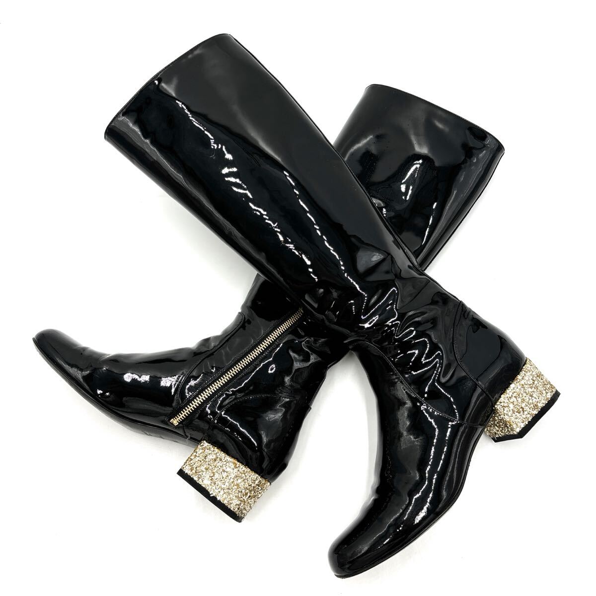 > M * イタリア製 '高級感溢れる' SAINT LAURENT PARIS サンローランパリ 本革 エナメルレザー ロング ヒール ブーツ EU36 22.5cm