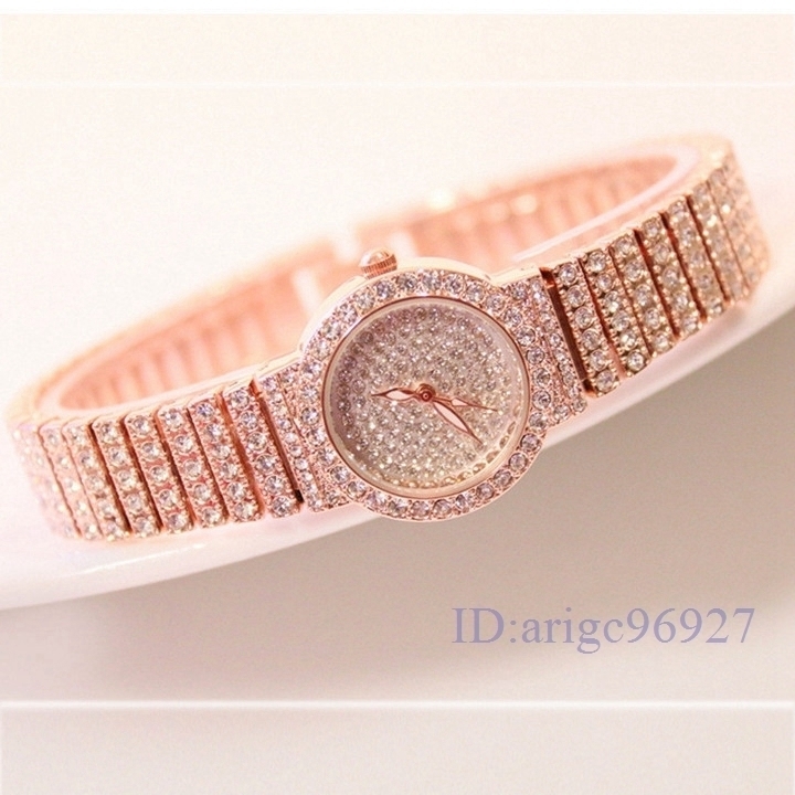 > F338★極絶★華奢★腕時計 レディース ダイヤハメる キラキラ輝く ウォッチ 女性用 ブレスレット バングル エレガント クォーツ式 ★Ros