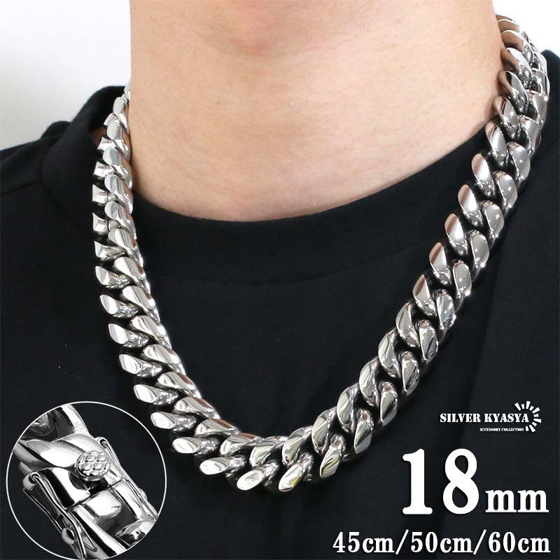 - (60cm) 316L 幅18mm 極太 メンズネックレス シルバー 喜平チェーン 喜平ネックレス ごつい 最強 重厚