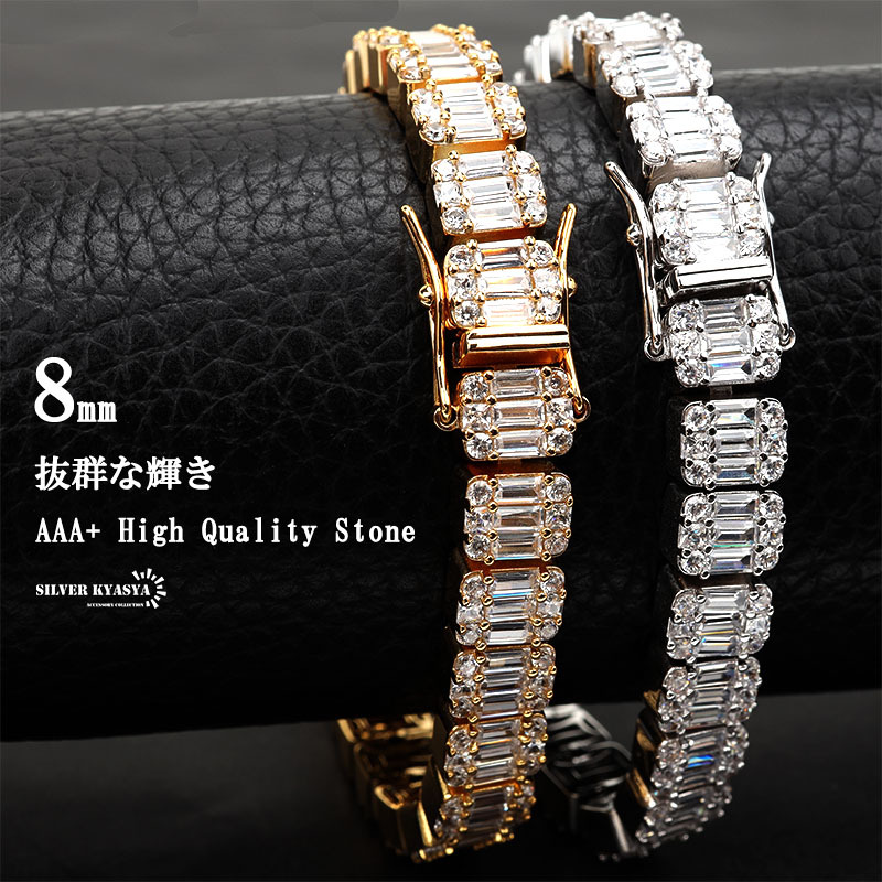- (ゴールド) B系 ブレスレット ゴールド 金 テニスチェーン アイスアウト ブレスレット シルバー 氷砂糖