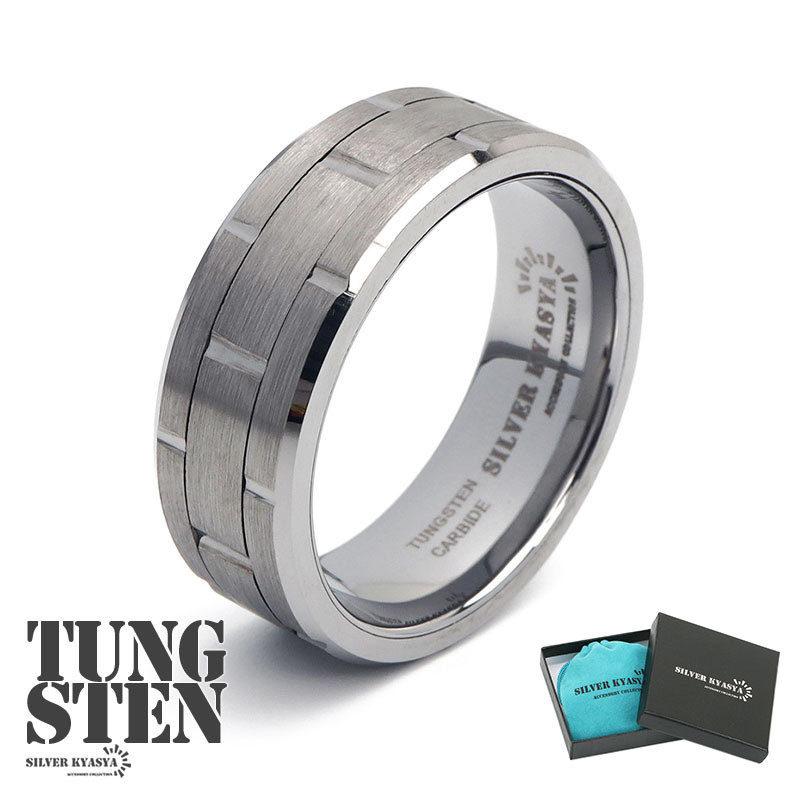 - (17号) タングステン ごつめ リング 指輪 シルバー 銀 マット レンガ ブロック対応 専用BOX オリジナル