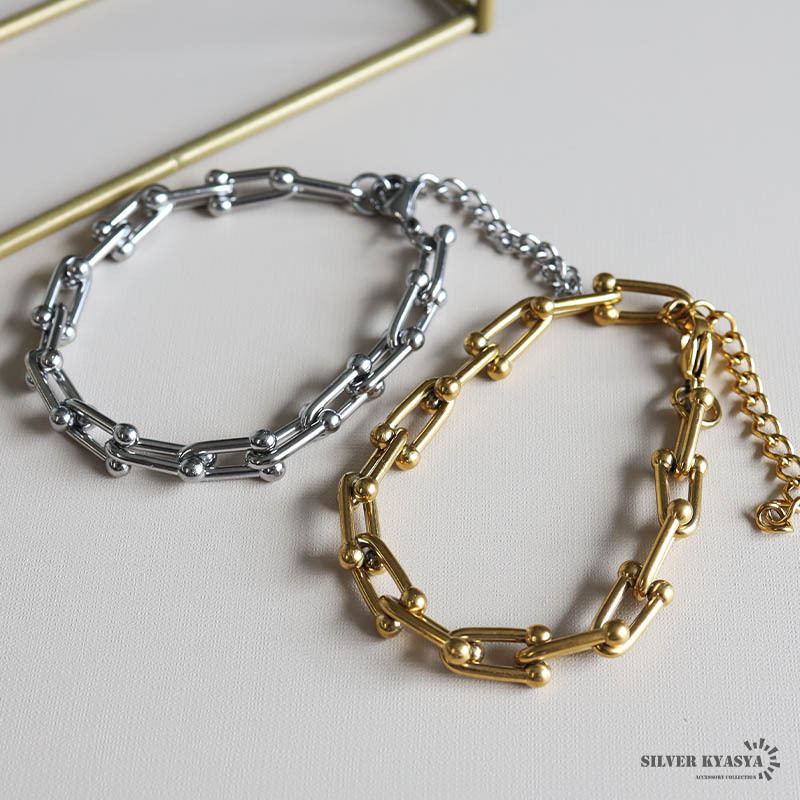 - (ゴールド) Uチェーンブレスレット レディース ステンレス 18K GP ゴールド シルバー 鎖 金属アレルギー対応