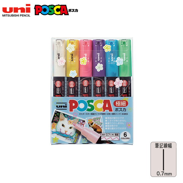 - 三菱鉛筆 uni ポスカ POSCA 極細 0.7mm スタンダードカラー 6色セット PC-1M 6C /【メール便OK】
