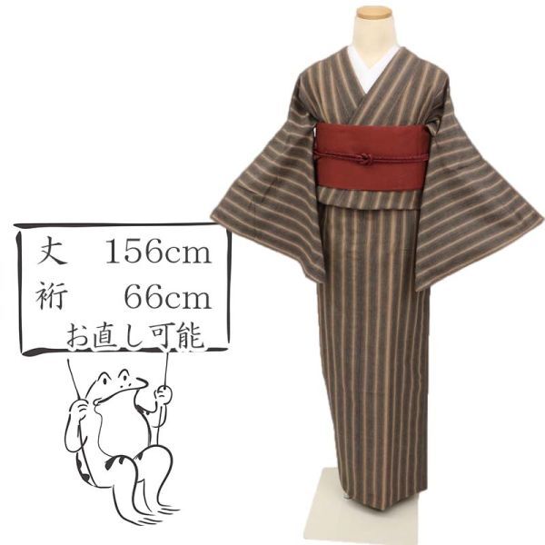 - 【小紋】 単衣 木綿着物 『よきもの倶楽部』 やわらか縞の織模様 濃淡茶色 KC12-14