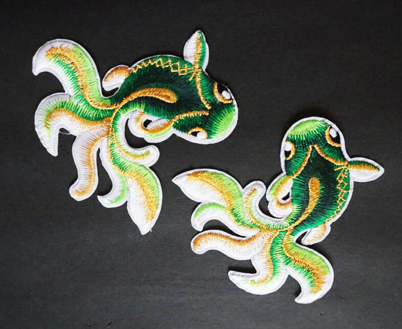 > 《2枚セットHK昔懐緑金魚》 新品■金糸アート レトロ袴 振袖 和服 呉服 裁縫 手芸 勝負服 成人式 刺繍ワッペン《開運 ラッキーアイテム》