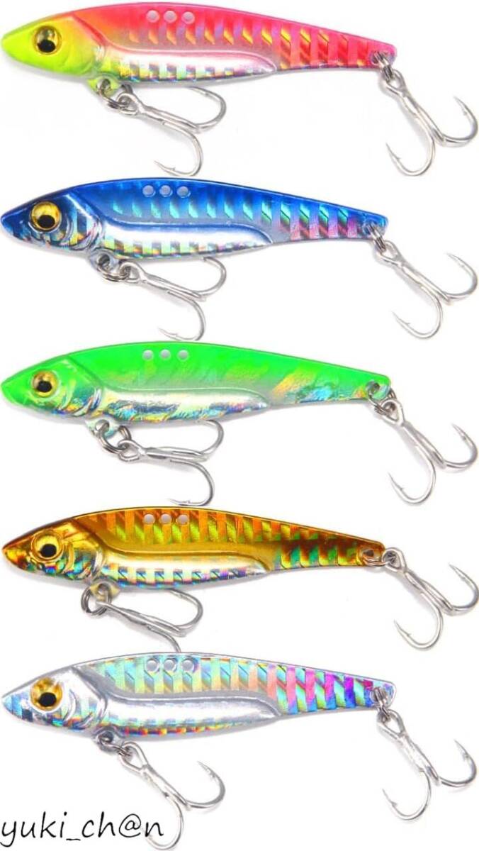 - ルアー 5色セット 8g 5.0cm シーバス ヒラメ コチ 青物 根魚 メタルバイブレーション 3Dアイ トレブルフック 釣具