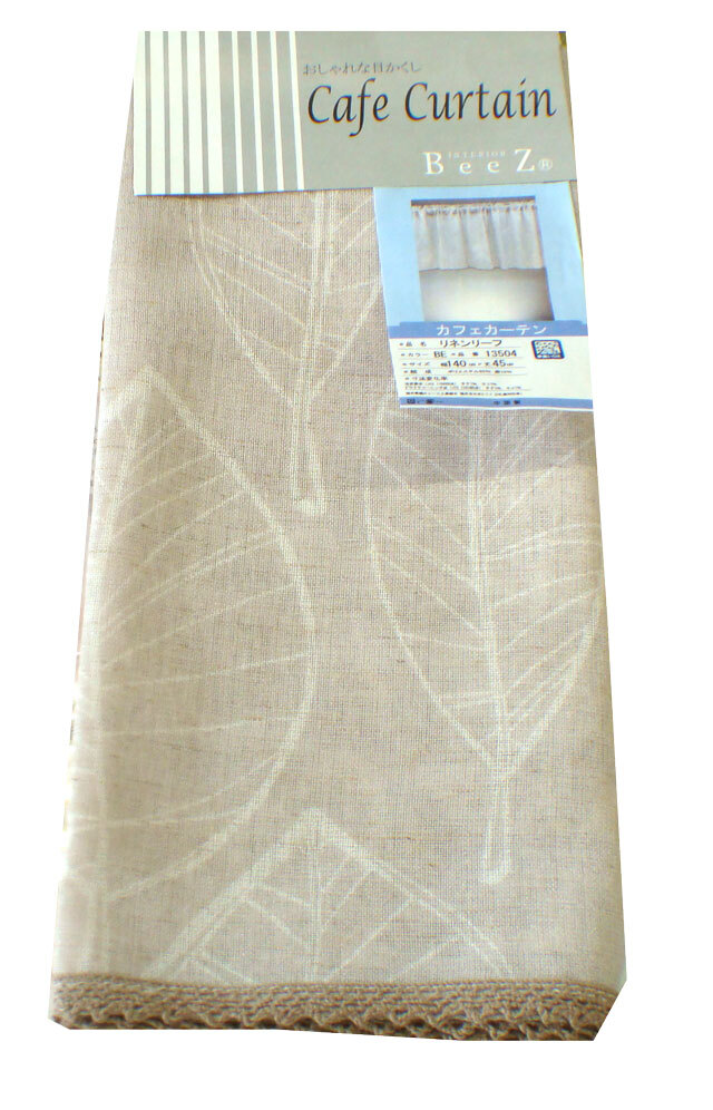 - 送料無料【新品 特価】 カフェカーテン 丈45㎝ 【 リネン リーフ 】麻混合生地