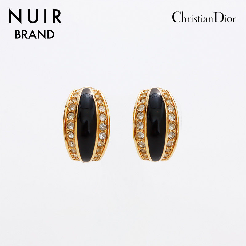 - クリスチャンディオール Christian Dior イヤリング ブラック ラインストーン ゴールド