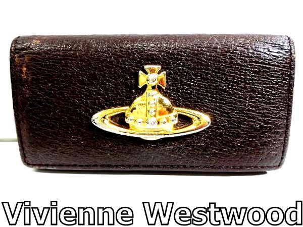 - X5B037◆本物◆ ヴィヴィアン・ウエストウッド Vivienne Westwood 本革レザー ブラウン ポケット付き 4連 キーケース
