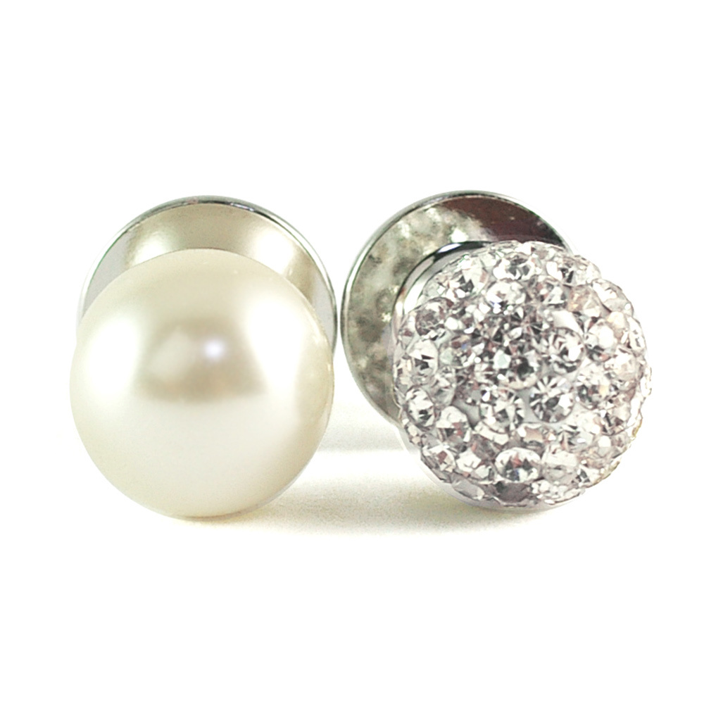 - [ロノティコ]Ronotico 2個セット パヴェボールとチェコ製クリスタルパール ピンブローチ パヴェ&ホワイト