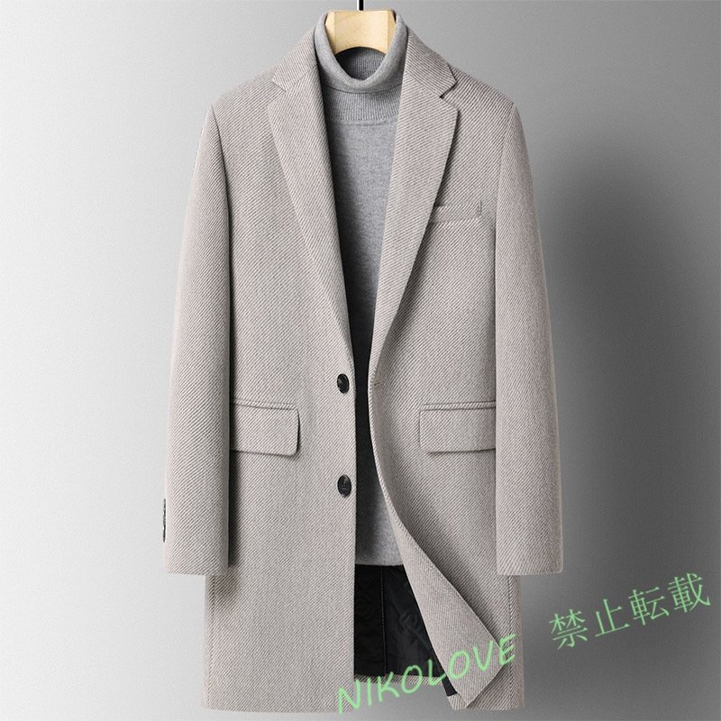 > ☆新品ロングコート メンズ ウールコート 紳士スーツ ビジネスコート 厚手 手作り カシミヤコート チェスターコート ベージュ XL~4XL LK231