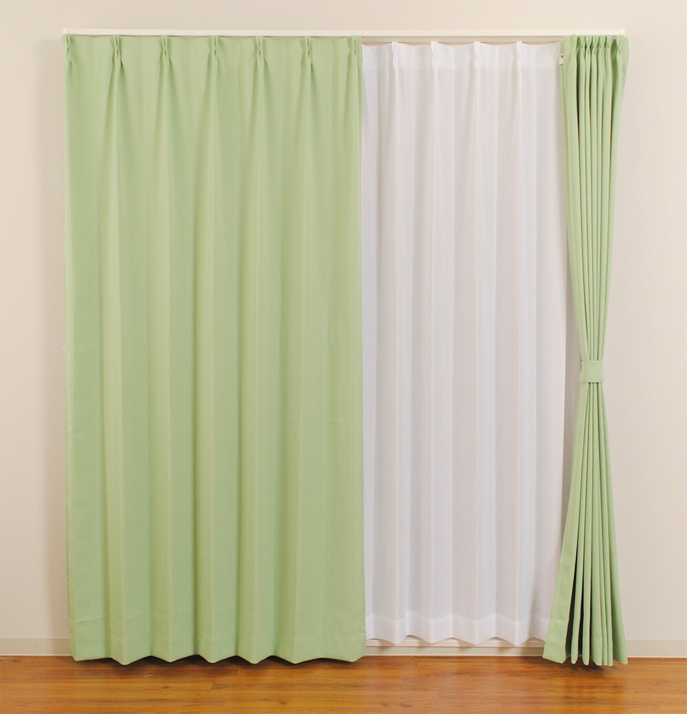 - 防炎カーテン グリーン べルーイ 幅150cm×丈178cm1枚 遮光カーテン 遮光1級 防炎加工(防炎ラベル付き)