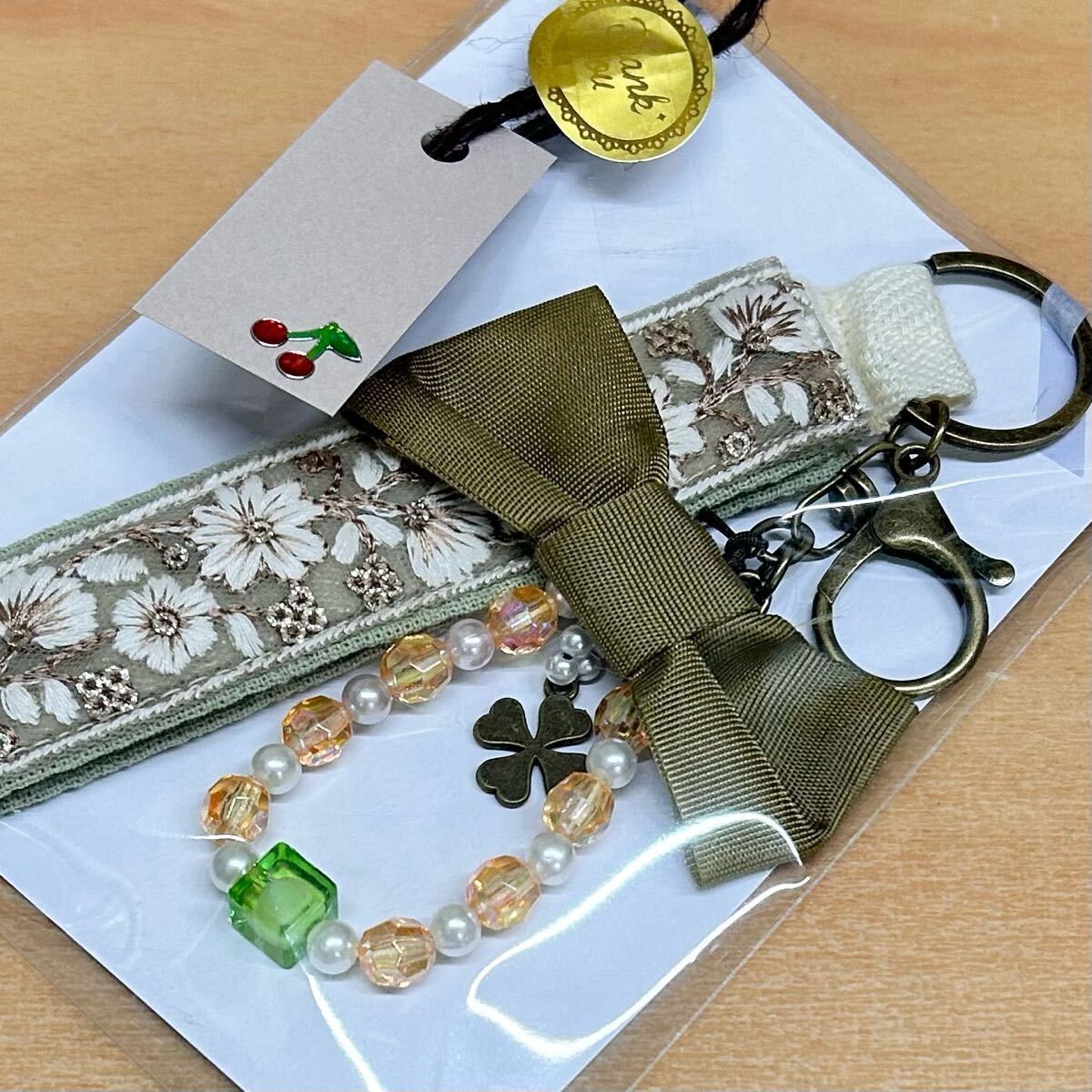 - 送料無料 インド刺繍リボン アンティーク キーリング チャーム タッセルキーホルダー cr-2