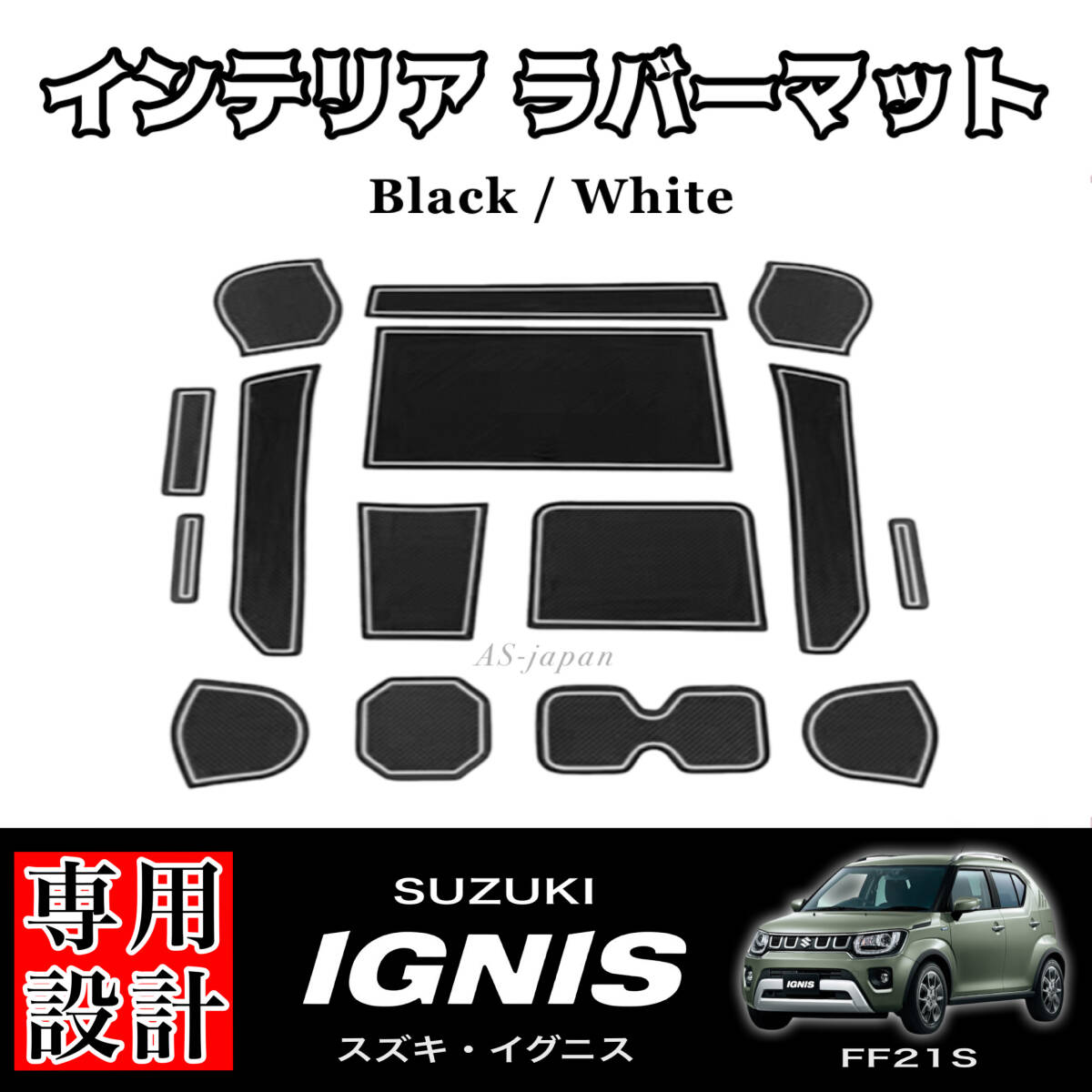 - スズキ イグニス 専用 設計 インテリアラバーマット 黒色ラバーマット / 白色ライン SUZUKI IGNIS FF21S 内装 ドレスアップ カスタム