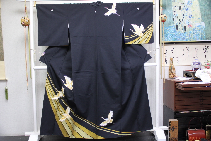 - きもの今昔8189 黒留袖 踊用 合繊ポリエステル100% 肩と袖にも柄があります 身丈160cm