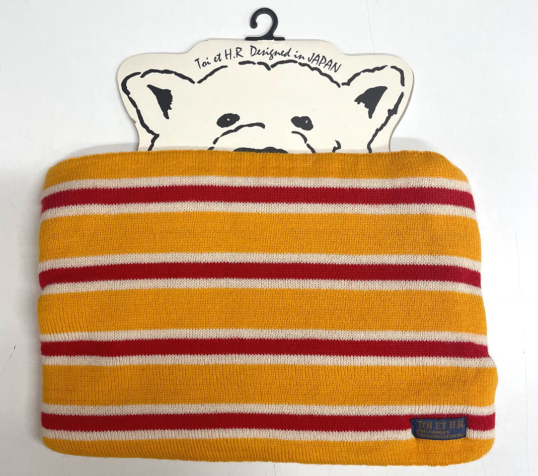 - トワ・エ・アシュエール 裏地ボア ネックウォーマー ボーダー オレンジ・レッド