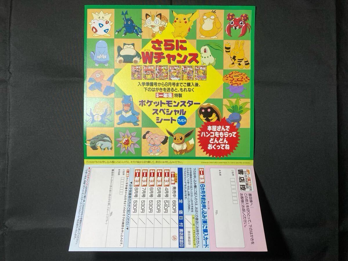 > ポケモン 小学一年生 スペシャルシート プレゼント 応募 ハガキ はがき 申込書 カビゴン イーブイ ドラえもん 1999 Pokemon Application