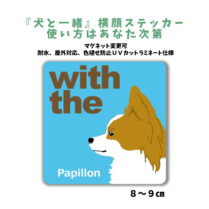 - パピヨン『 犬と一 緒』【玄関 車 ポスト】ステッカー 名入れ マグネット変更可 屋外 防水 カスタマイズ