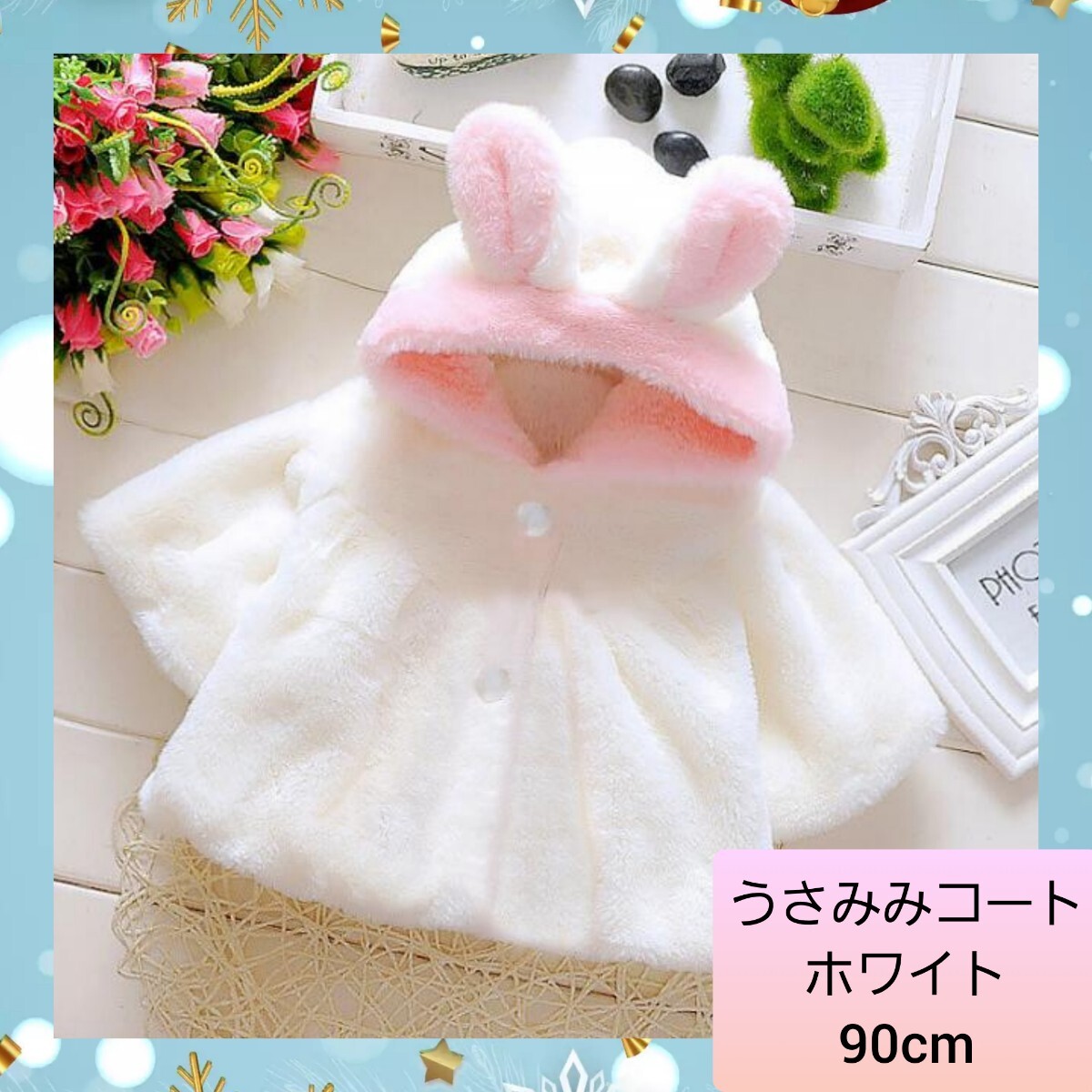 - 赤ちゃん もこもこ うさぎ ボアコート ふわもこ ホワイト ベビー 90cm 2