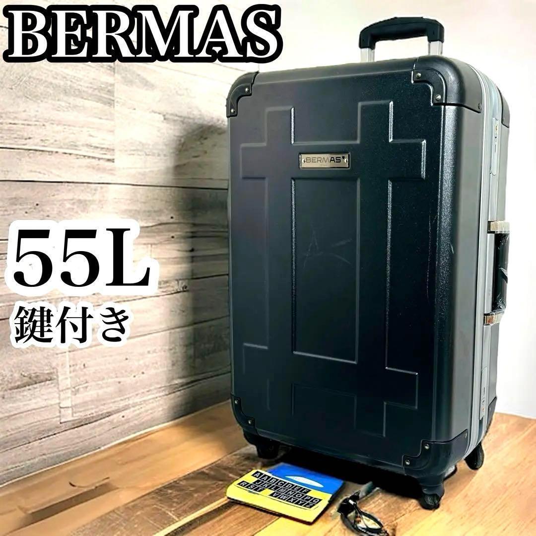 - 極美品 BERMAS バーマス キャリーケース スーツケース 55L 旅行 出張 ハードケース ブラック フレームタイプ 鍵付き TASロック 4輪