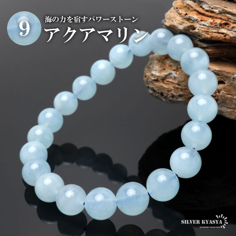 - (Mサイズ) パワーストーンブレスレット 数珠ブレスレット アクアマリン 9mm 天然石ブレスレット ブラジル産