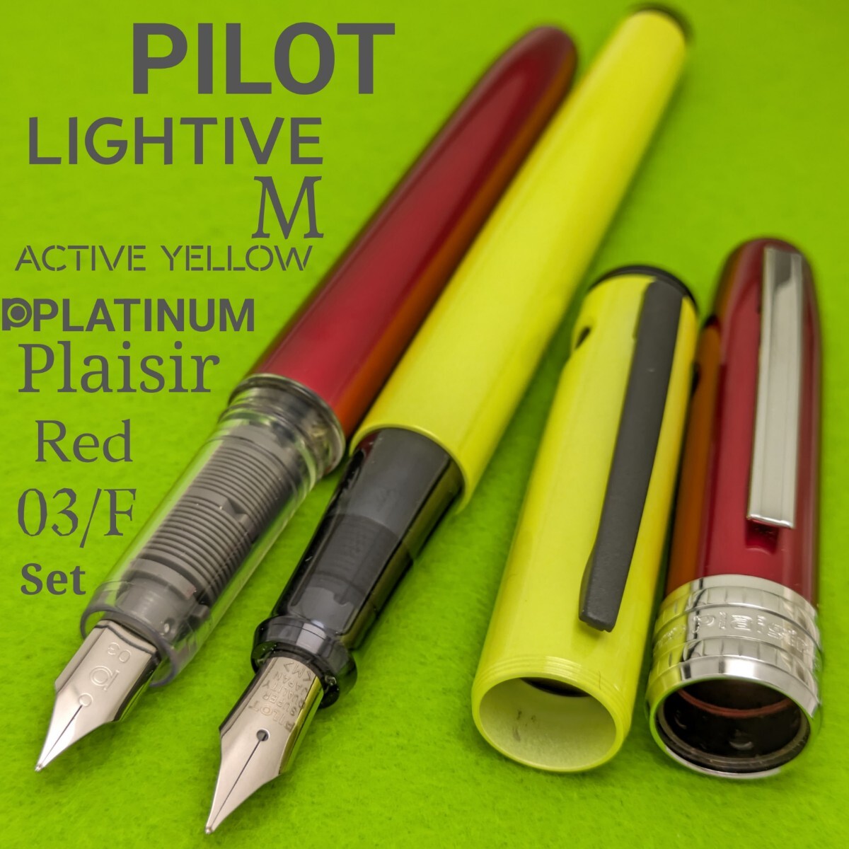 - 中古 万年筆 セット ライティブ 中字 アクティブイエロー プレジール 細字 レッド シリンジ ボトルインク 付き 3K1941