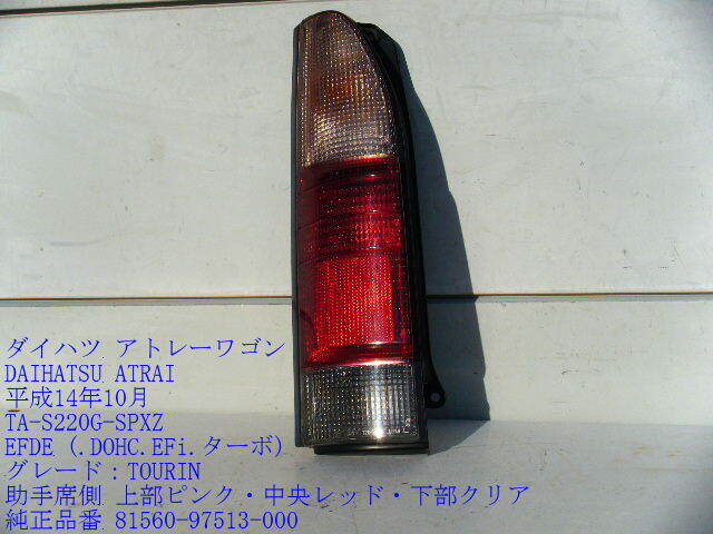 > ◆S220G ダイハツ ハイゼット アトレー 左 テールランプ ピンク・レッド・クリア 220-51643 81560-97513-000 [13670]