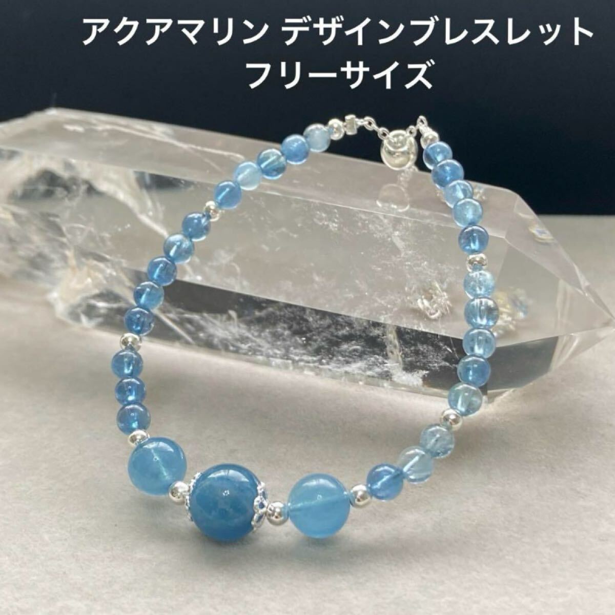 - C682 アクアマリン デザインブレスレット フリーサイズ