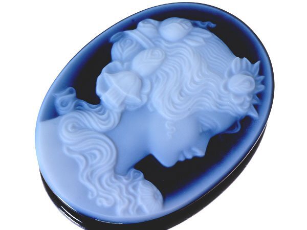 > 【ジュエリー極】華やかな貴婦人と花の彫刻 高級ブルーストーンカメオルース 39.7mm×29.8mm w4931-m【送料無料】