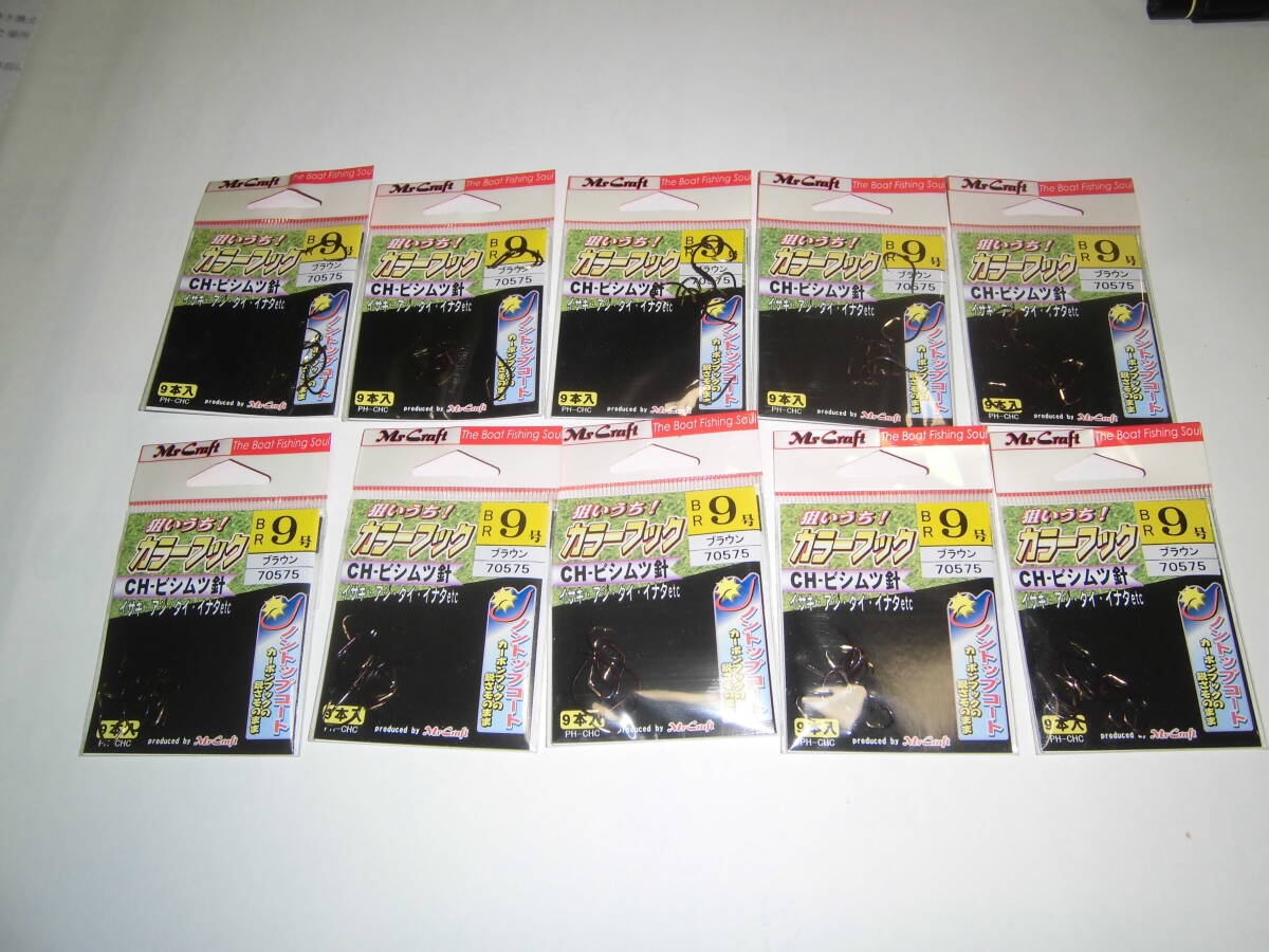 - ミサキ カラーフック ビシ ムツ針9号 ブラウン 9本入りX10袋 カーボンフック ノントップコート アジ イサキ イナダ